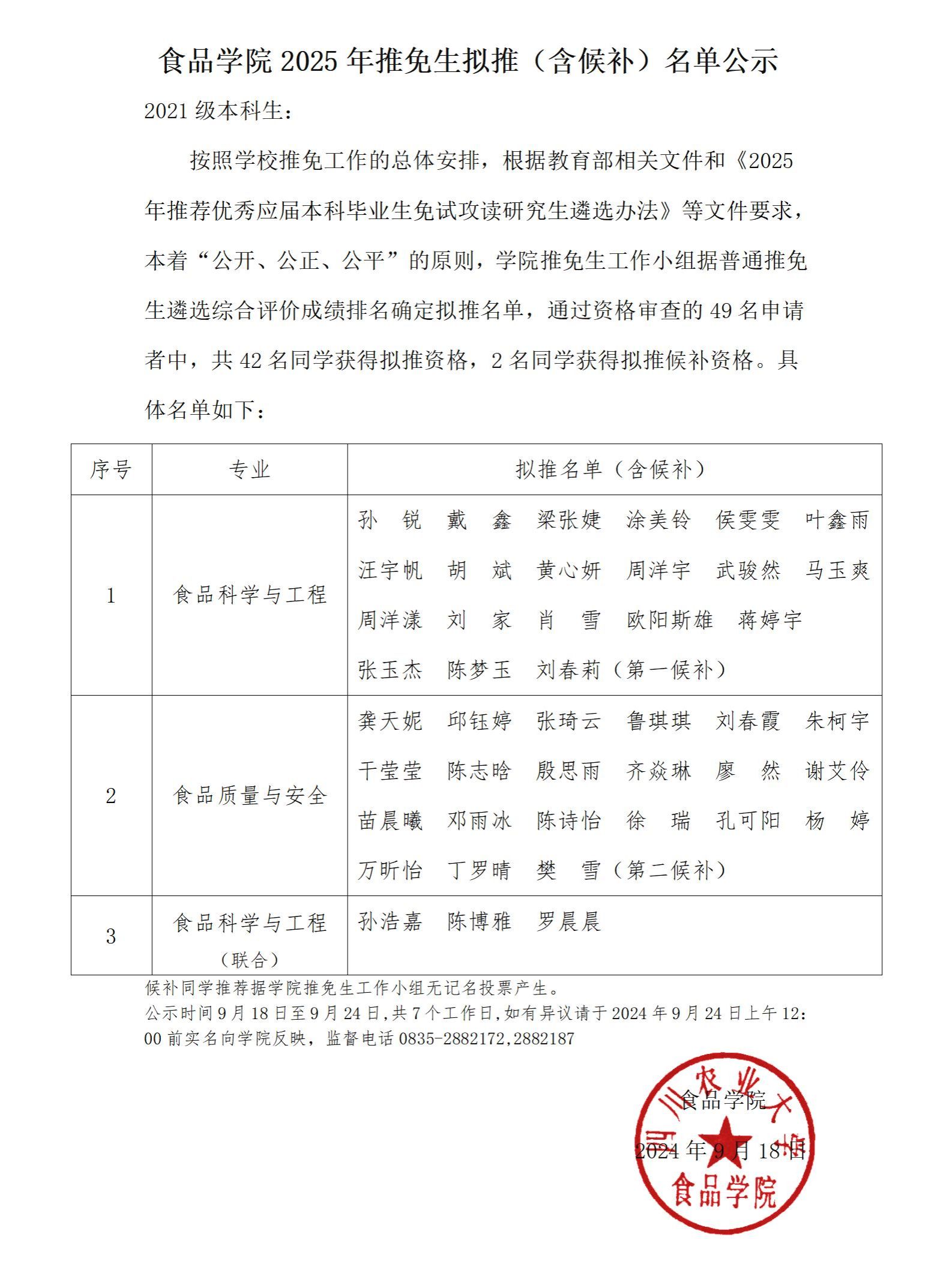 导航痕迹 必一运动官网 首页 旗下产业 日常管理 正文 专业设置 日常管理 课程建设 教学研究 老员工校外实践教育基地 食品科学与工程专业工程教育认证 必一运动官网2025年推免生拟推(含候补)名单公示 2024年09月18日 15:58 点击:[] 附件【必一运动官网2025年推荐优秀毕业生免试攻读研究生遴选公示.pdf】已下载次 上一条:关于开展2024年老员工创新创业训练计划项目中期检查工作的通知 下一条:必一运动官网2025年推荐优秀应届本科毕业生免试攻读研究生工作通知 【关闭】