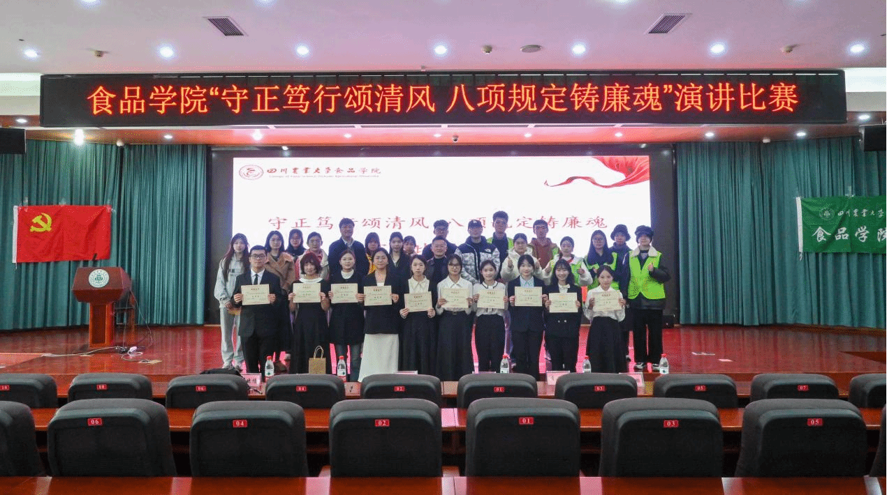 演讲结束后,何勇对活动进行总结,他充分肯定了选手们精心的准备与赛上的精彩表现,特别在内容上能够紧扣食品人的身份定位,展现了鲜明的专业的特色。同时,他希望同学们能够将廉洁内化于心,外化于行,把演讲中传递的信念转化为日常学习生活中的自觉行动;希望老师们能够发挥示范作用,做好廉洁从教的表率,将廉洁教育融入课堂科研和实习实践的全过程。学院将持续深化廉洁文化建设,将中央八项规定精神与专业教育、红色教育、校园文化教育相结合,通过主题班会、学术讲座、实践调研等多种形式,让廉洁文化走进课堂,走进实验室,走进师生的生活。