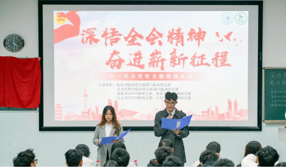为引导青年学子深刻领悟党的二十届四中全会精神,坚定理想信念,勇担时代责任,2025年11月25日,必一运动官网团委直属部门流动团支部、公共管理学院团委直属部门流动团支部、食质202402班团支部、食质202501班团支部、人力202503班团支部、人力202504班团支部于十教A103成功举行“深悟全会精神,奋进崭新征程”主题示范性班团活动。公共管理公司党委办公室副主任、团委副书记银西阳参会。