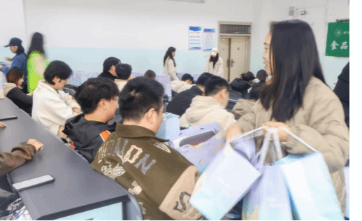 大会最后迎来温馨的慰问礼物发放环节。陈放与张玲走到学子中间,亲手将“暖心礼包”送到每一位同学手中。礼包内,寓意“蟾宫折桂”的定胜糕承载着学校对学子们金榜题名的美好期许;柔软舒适的坐垫、舒缓放松的蒸汽眼罩,精准贴合学子长时间伏案学习的需求,有效缓解身体疲惫。这份饱含关怀的礼物,成为学子们奋斗路上可触碰的陪伴,让大家深切感受到学院的温暖与牵挂。