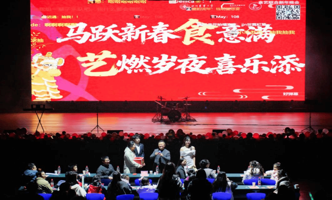 第三篇章“璀璨迎新‘艺’起向未来,未来可期‘食’景一同赏”将晚会氛围拉满,体育舞蹈代表队的《谍·舞》舞步利落、张力十足;演唱团的《你曾是少年》唤起全场青春共鸣;播音主持中心的《红铁》、员工器乐社吉他协会联合演绎的《不能说的秘密》,用不同艺术形式传递青春心声。抽奖与第三轮红包环节让现场惊喜不断,观众们踊跃参与,共享新年喜悦。