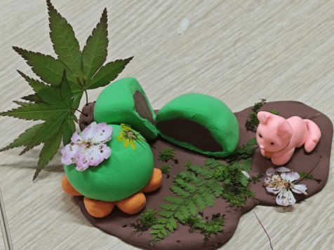 宣讲结束后,趣味青团制作环节正式开启。活动中,同学们用踏青时收集的自然材料装饰粘土青团。大家围坐一堂,认真专注地为青团设计花纹、搭配色彩,将心意融入作品之中。成品既保留了传统特色,又融入了青春创意,体现了新时代青年对传统文化的创新理解。制作完成后,同学们依次展示作品,并分享各自的创作灵感。