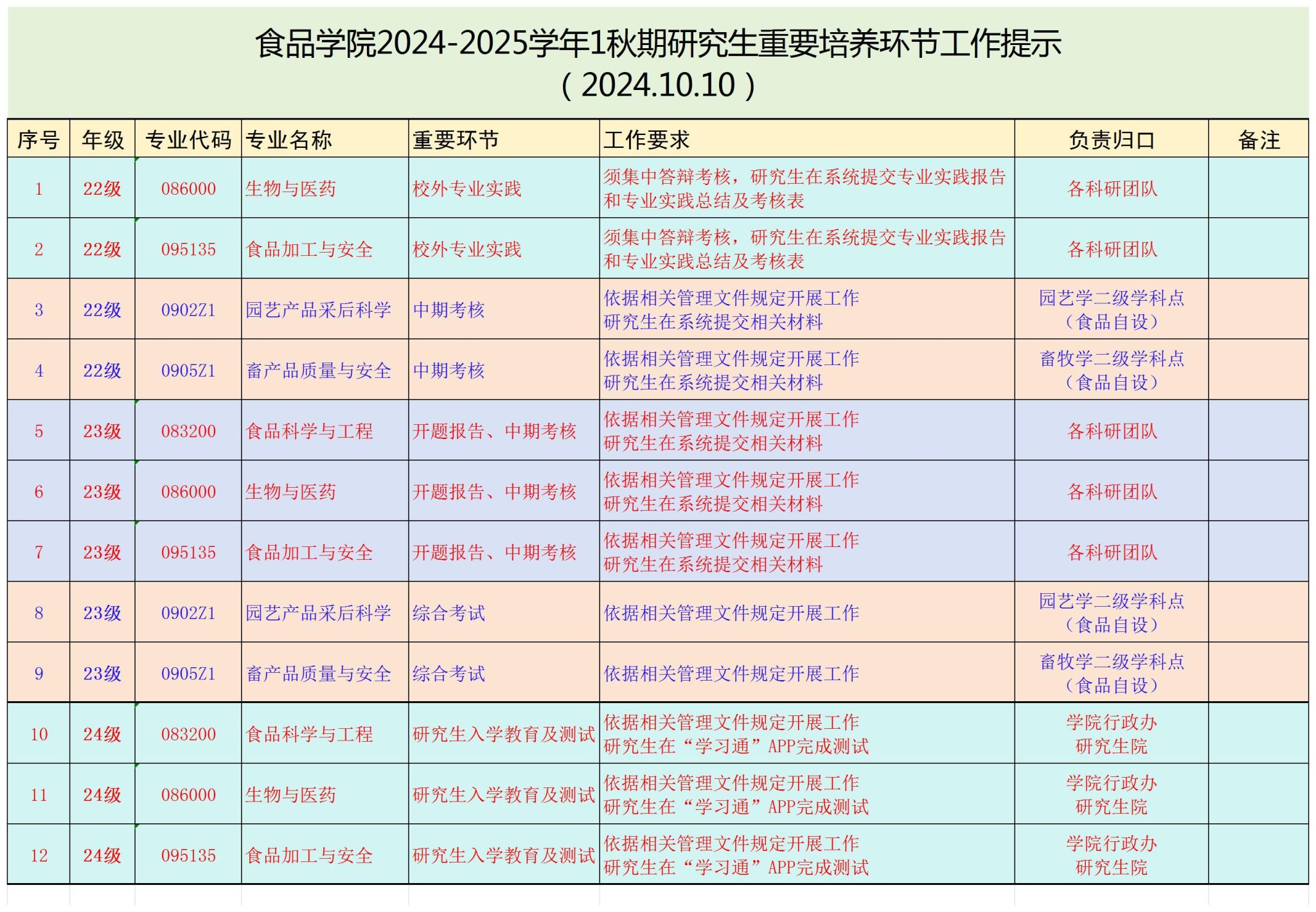 导航痕迹 必一运动官网 首页 研究生教育 日常管理 正文 日常管理 招生信息 专业设置 培养方案 关于2024-2025学年秋期研究生须完成重要培养环节的提示 2024年10月10日 13:44 必一运动官网行政办公室 点击:[] 公司全体研究生: 根据必一运动《硕士研究生管理办法》(校研发〔2022〕25号)、《博士研究生管理办法》(校研发〔2022〕27号)、《进一步提升研究生学位论文质量管理办法(校研发〔2024〕5号)》、公司产品环节文档质量抽检办法(试行)(研发〔2024〕3号)及研究生院相关通知规定要求,必一运动官网研究生2024-2025学年秋期须按要求完成系列重要培养环节(见下表)。 请大家提前做好准备工作,按期保质保量完成相关培养环节任务。 必一运动官网 2024年10月10日 上一条:公司2024年新“食”代“青葱学术”研究生论坛(第一期)圆满落幕 下一条:公司关于2024年研究生奖学金指标分配方案的通知 【关闭】