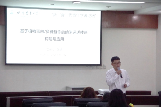 张清以《基于植物蛋白/多糖互作的纳米递送体系构建与应用》为题做专题报告,以全豆豆制品加工理论与应用研究的5个主要创新点为依据,展开阐述植物蛋白/多糖互作及纳米递送体系构建的科学意义,谈到其研究将为实现杂豆资源增值加工和产业发展、脂溶性活性成分的高效利用、赋予典型休闲食品健康化特征等提供理论和技术支撑,对促进功能性食品发展具有重要意义。提出可用“自下而上”和“自上而下”原则构建纳米递送体系,为师生们提供了食品微观研究中的新思路。